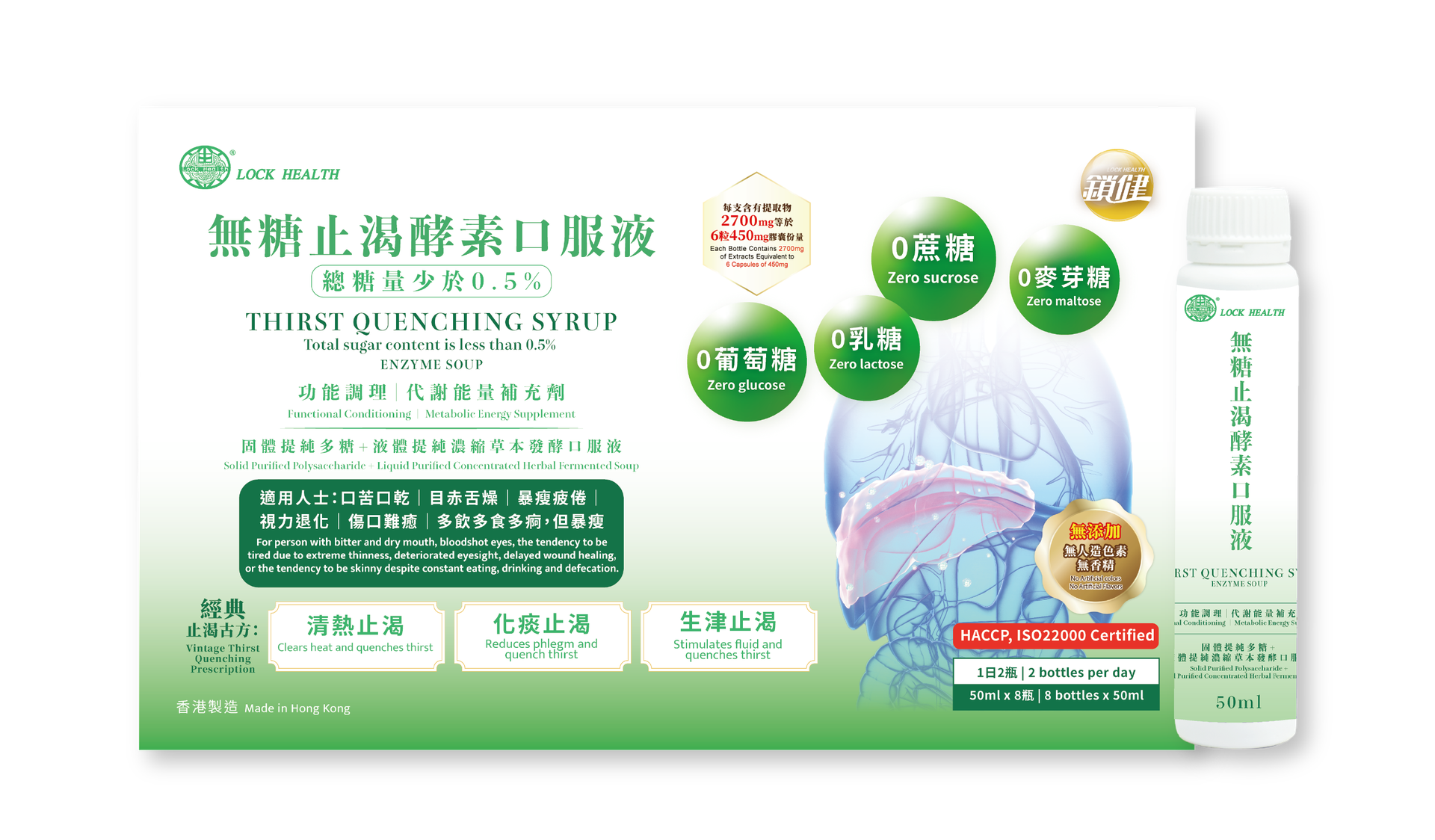 香港鎖健 LOCK HEALTH 無糖止渴酵素口服液 (總糖量少於0.5%)8瓶*50毫升/盒