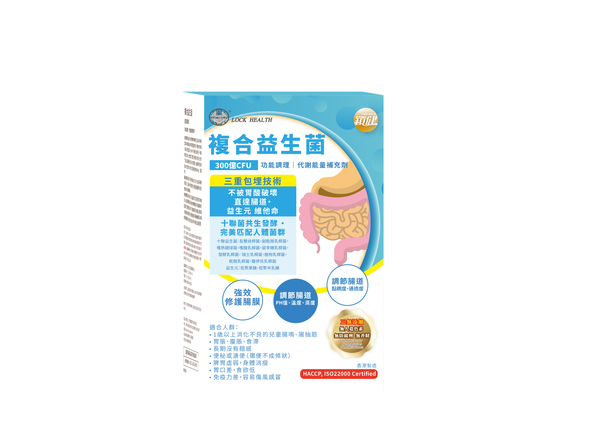 多方位擊垮腸道問題:多元化複合菌種,每一種乳酸菌有其不同功效,以應對環境中對人體產生的不良反應,例如腹脹、腹痛、便秘、腹瀉等。
